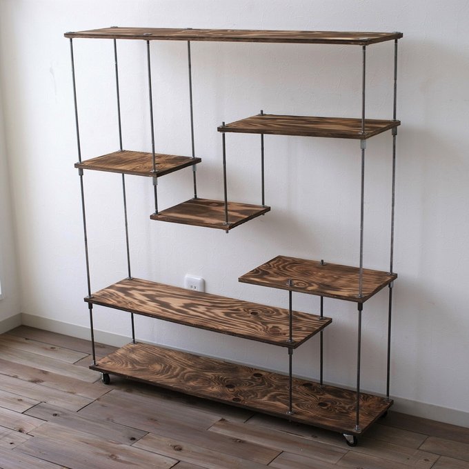 即納 wood iron shelf 1040*910*225 アイアン 棚 シェルフ ウッド 鉄 木 収納棚 アンティーク オープンラック 両面棚段違い棚 観葉植物- 造形壱國 ikokuminne byGMOペパボ 国内最大級のハンドメイド・手作り通販サイト。