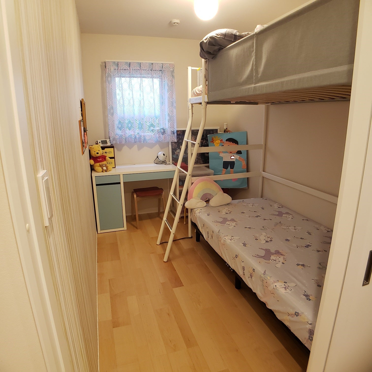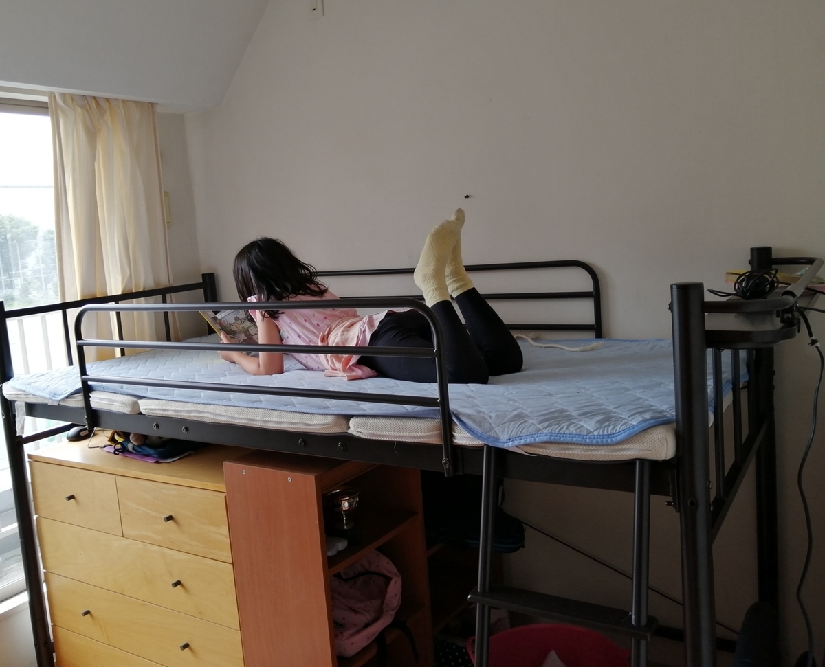 4畳半の子供部屋① 兄に続き、小3娘にも個室を。ベッド、机、本棚、タンス 狭いスペースにあらゆる家具をどう置く?~「ロフトベッド」という手段 -働く母。両立メモ。