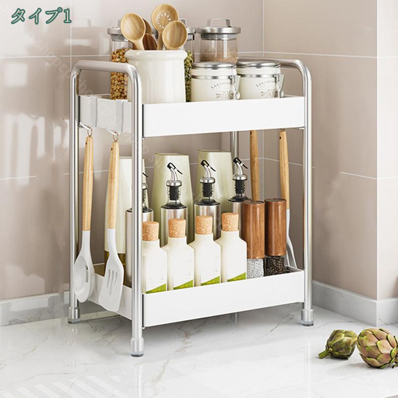 キッチンラック 2段 台所 収納ラック キッチン 卓上 ラック 棚 スリム ステンレス オープンラック シェルフ 調味料ラック キッチンテーブル棚スパイスホルダー 台所収納ラック 省スペース 防水で清潔にしやすい 卓上整理 shopcp。