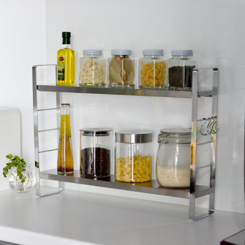 スパイスラック 調味料ラック 薄型 スリム シンク上 コンロ奥ラック 2段 おしゃれ ステンレス 収納棚 燕三条 日本製-プラスチック収納用品専門店MJ。