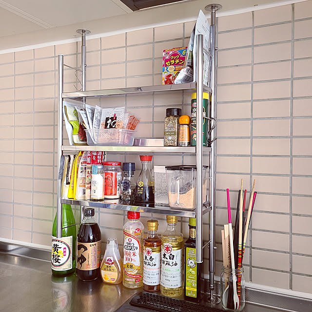 ステンレス 調味料ラック スリム 日本製 つっぱり式 突っ張り スパイスラック 3段調味料・スパイスラック オンライン通販。