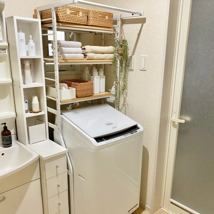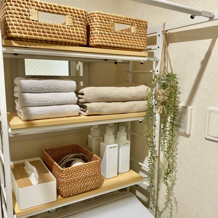 バスタオルはおしゃれに収納できる!狭い洗面所を上手に活用したアイデアを大公開。