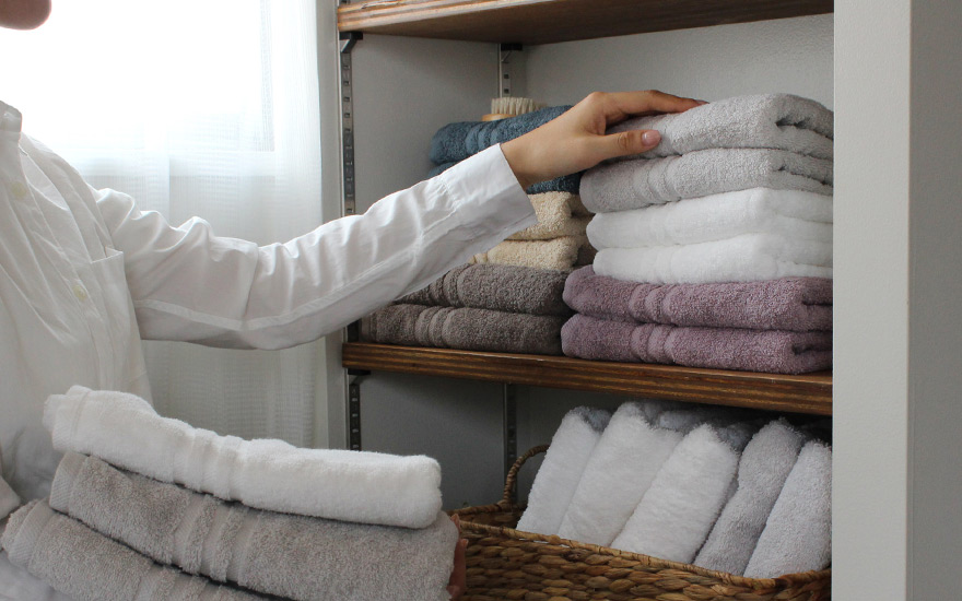 美しくて使いやすいタオル収納術。4ステップで家事がラクな洗面所へ!バスタオルが取りやすい収納方法のアイデアにクラシニティパソナの家事代行サービス。