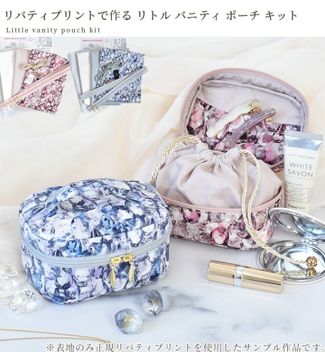 楽天市場 手作りキット リバティ プリント で作る リトルバニティ ポーチ キット レシピ 型紙 動画 付き ゆうパケット送料無料 □ 手芸キット化粧ポーチ コスメ メイクポーチ 小物入れ 中級 □ : 手作り工房MYmama エムワイママ。