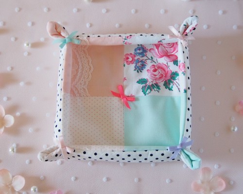 ハギレで出来る小物入れ 浅い小物入れ 余り布活用 布で作る小物入れ。