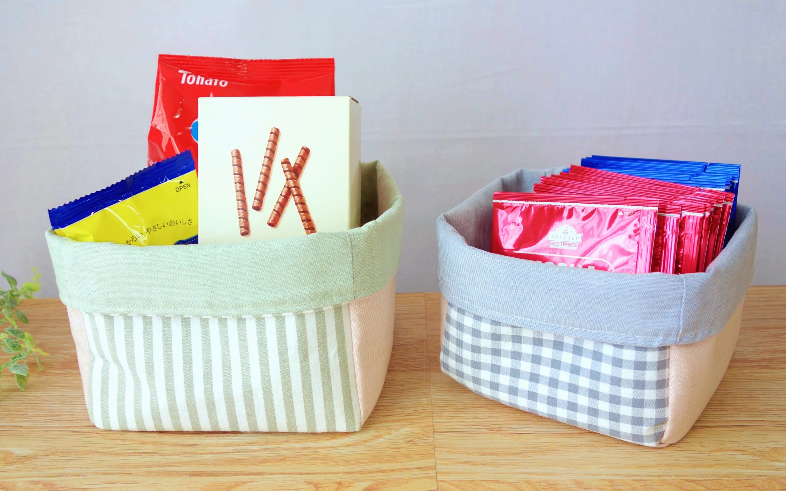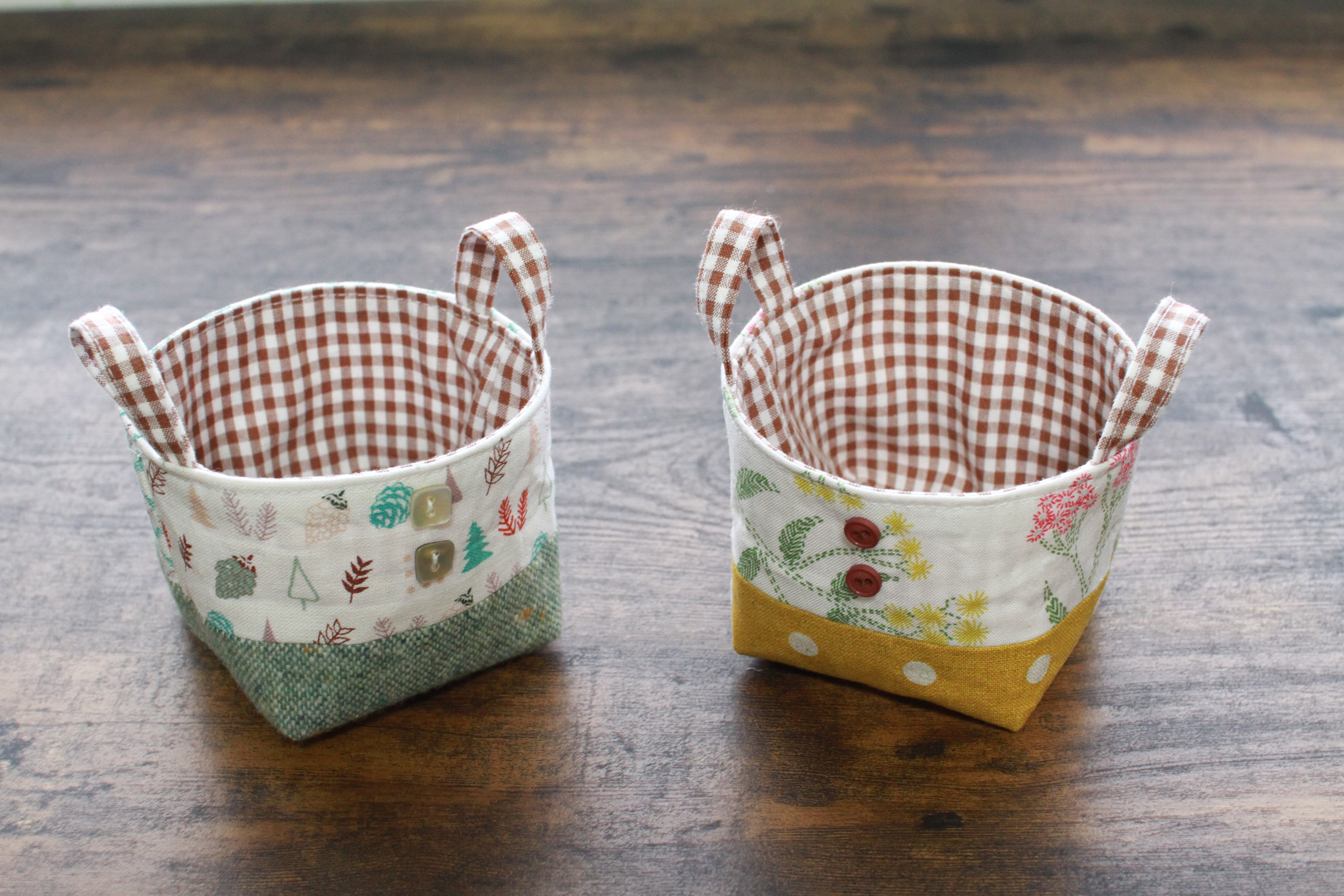 簡単小さな小物入れの作り方 ハギレ活用!かわいい持ち手付き布バスケット : ハンドメイドどっとこむ無料レシピ紹介*オリジナルハンドメイド雑貨制作・販売。