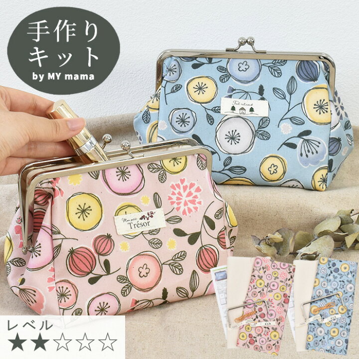 手作りキット 大きめ カジュアル コスメ ポーチ レシピ 型紙 動画 付き ゆうパケット送料無料 ■ 小物入れ 化粧ポーチ 大きく開く がま口 口金おしゃれ 北欧 花柄 フラワー ラミネート 生地 布 初心者 手芸キット セット ハンドメイド 手芸 手作り LV2 初級 ■。
