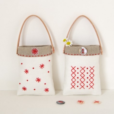 ドット刺しゅうのミニトランクケース・小物入れ・袋・ポーチ手づくりレシピそーいんぐ.com。