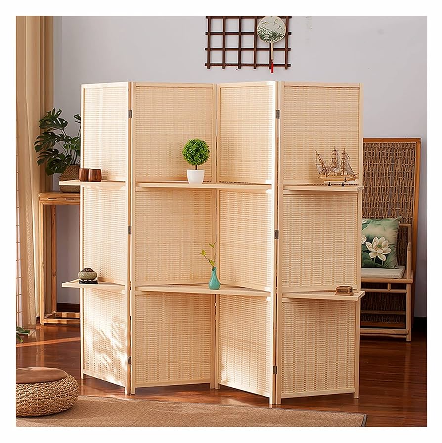 パーテーション おしゃれ 室内 棚付き 部屋 間仕切り 家具 竹素材 ほぞ継ぎ構造 部屋の仕切り 収納 茶室、家庭、オフィスの装飾にAmazonパーテーション 衝立 部屋 仕切り 間仕切り 収納棚付き4枚パネルルームスクリーンディバイダー、 ポータブルリムーバブル。