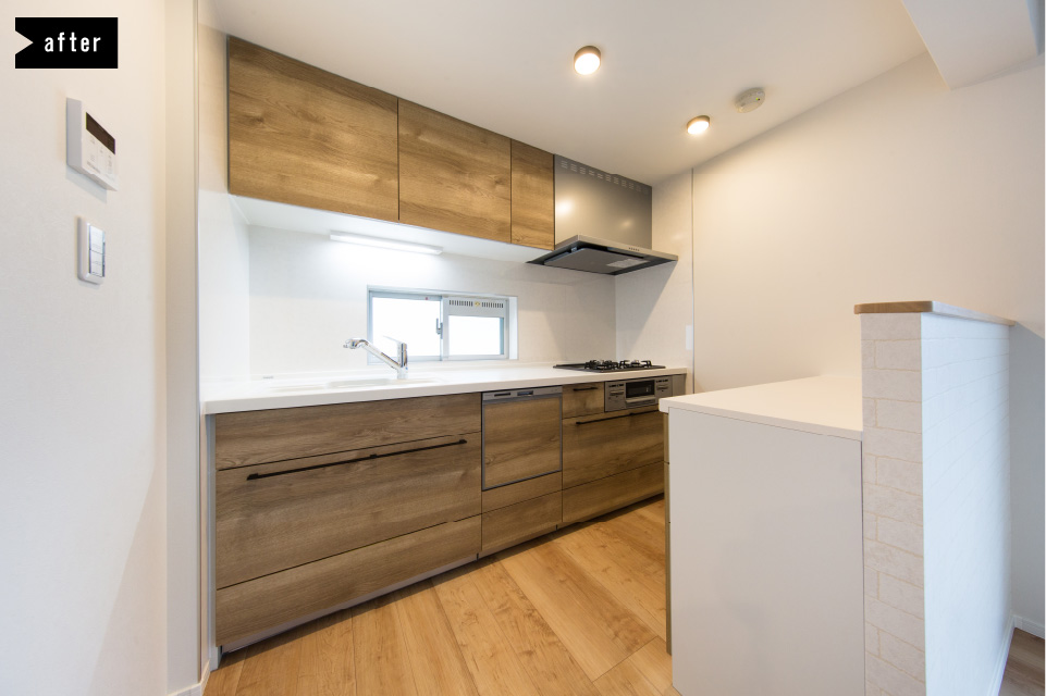 北欧キッチンへのキッチンリフォーム、リノベーション例 オーダーキッチン。