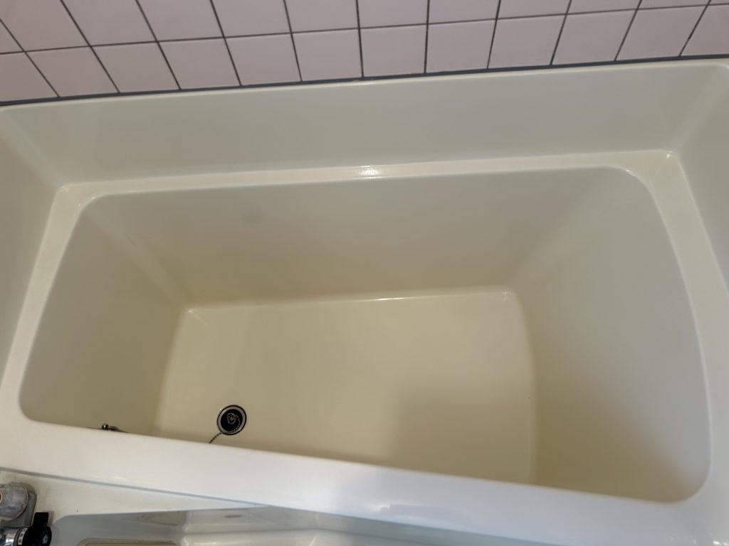 遠軽町で賃貸アパートのひび割れ&浴槽塗装に行って来ました♪ひび割れからの漏水を心配されていたので補強修理の後、再生塗装でピカピカ✨遠軽町浴槽塗装浴槽補修バスタブ塗装バスタブ修理浴槽ひびバスタブひび割れ。