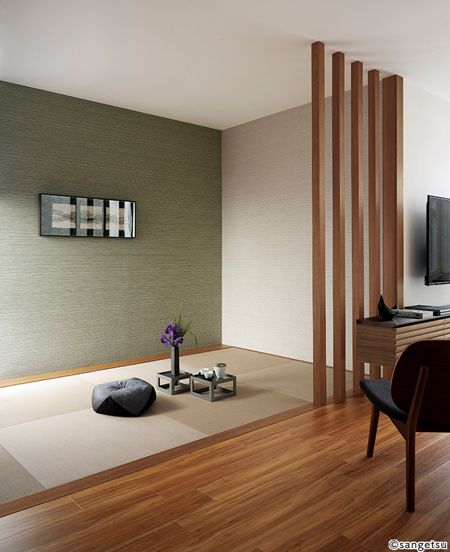 和と洋の調和がとれた美しい和室輸入壁紙 クロス のテシード。
