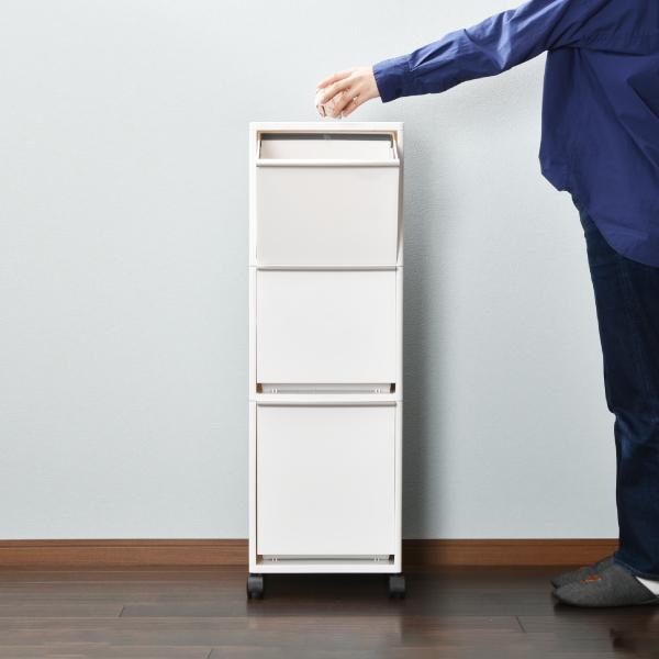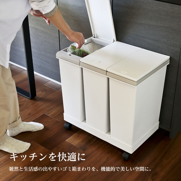 日本製 燕三条 隠せるデザインごみ箱 15L×3分別 隠しキャスター 幅45cm スリム ダストボックス ゴミ箱 白 ホワイト モノトーン –Branchée Beauté。