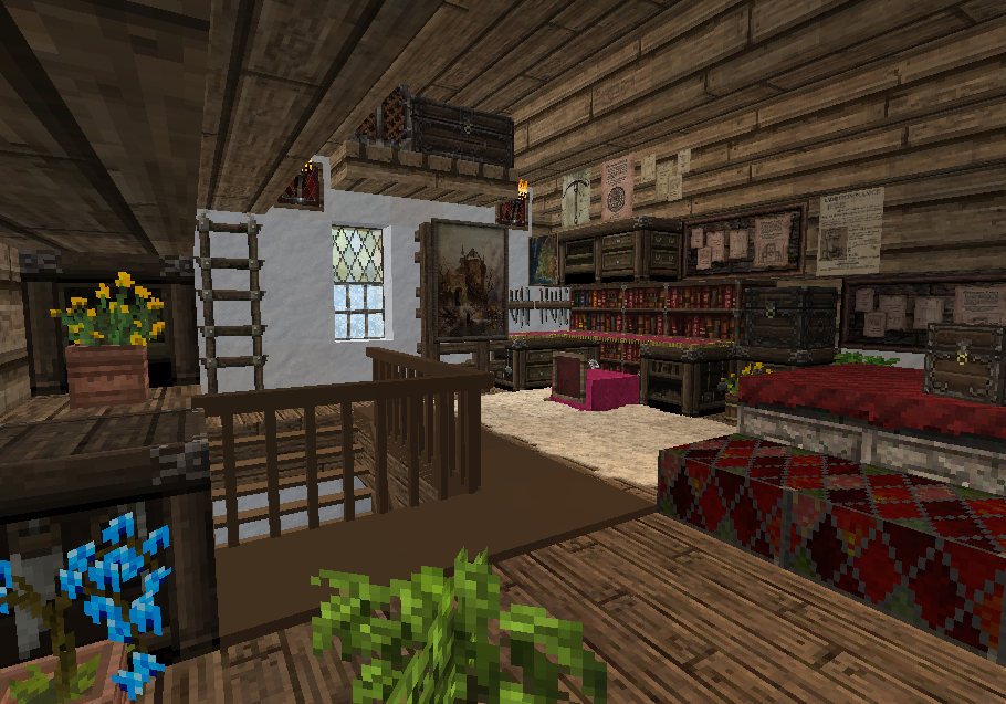 のがみmao on X: "そしてお城内装の紹介ラスト! ハシゴを登って屋根裏部屋。こっちも宝物庫ですが、天使の絵を飾って簡易的な礼拝堂も兼ねています。 メインの紹介物は以上です。明日は言っていた井戸のギミック紹介をして、砂漠の街建築をやります ○´ω`○マイン。