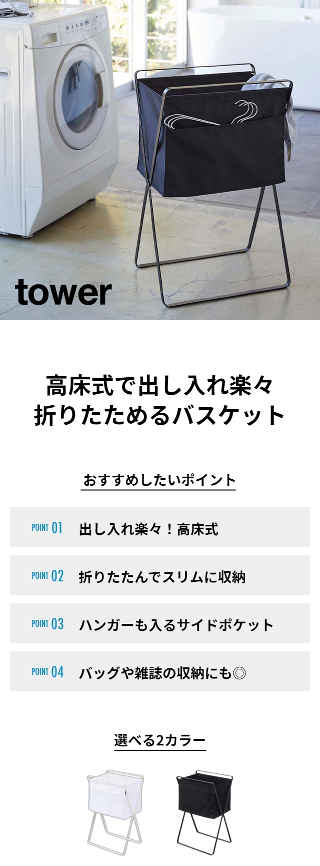 山崎実業 ランドリーバスケット 洗濯かご 折りたたみランドリーバスケット 洗濯物入れ ランドリーボックス 折りたたみ オシャレ 持ち手 ランドリー収納yamazaki タワーシリーズtower タワー 折り畳み高床式ランドリーバスケット 5661 5662 49032080566184903208056625。