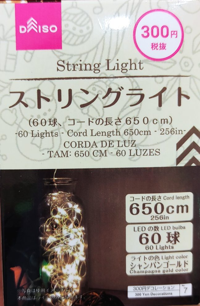 100均ダイソーの「電飾 フェアリーライト、イルミネーションライト 」を全部買ってみます 6種類rooms19。