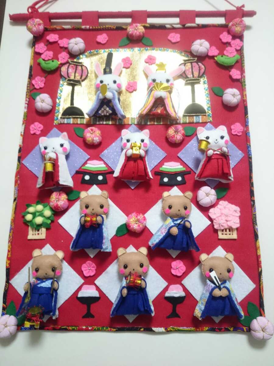 ひな祭りタペストリー手作りキット 風物短冊 3月 吊り雛飾りで桃の節句 生地 和柄 和布 ちりめん手芸通販布がたり。
