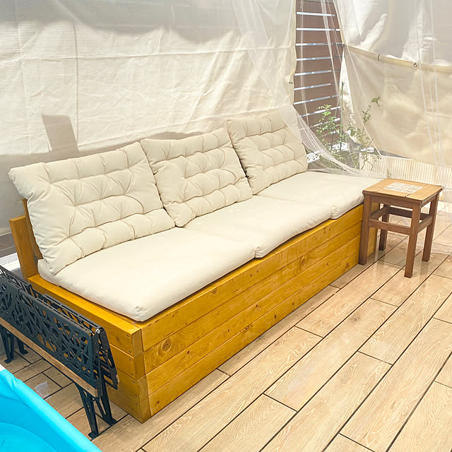 ikeaの屋外クッショにぴったりサイズのガーデンソファーをDIYさんぽmichi。
