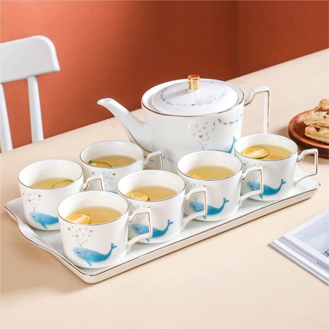 ティーセット ティーポット 6 個クリエイティブティーセットトレイコーヒーポットセット北欧ティーポットセラミックスアフタヌーンティー Amazonティーセットティーポットセット 6 個北欧ティーカップセット 4 カップトレイホームセラミックティーポットアフタヌーン。
