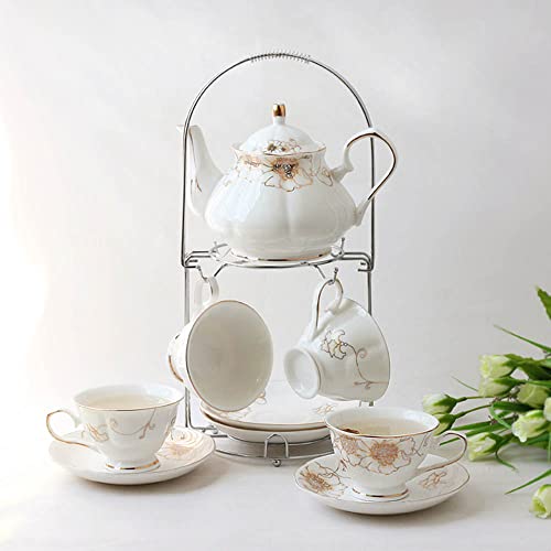 Amazon.co.jp: ティーカップ セット ティーセット 英国の磁器のお茶セット コーヒーカップ セット カップ付きのセラミックティーポットとカップホルダースタンド付きのソーサーセット大人のためのセラミックティーサービスアフタヌーンティーセットA: ホーム。
