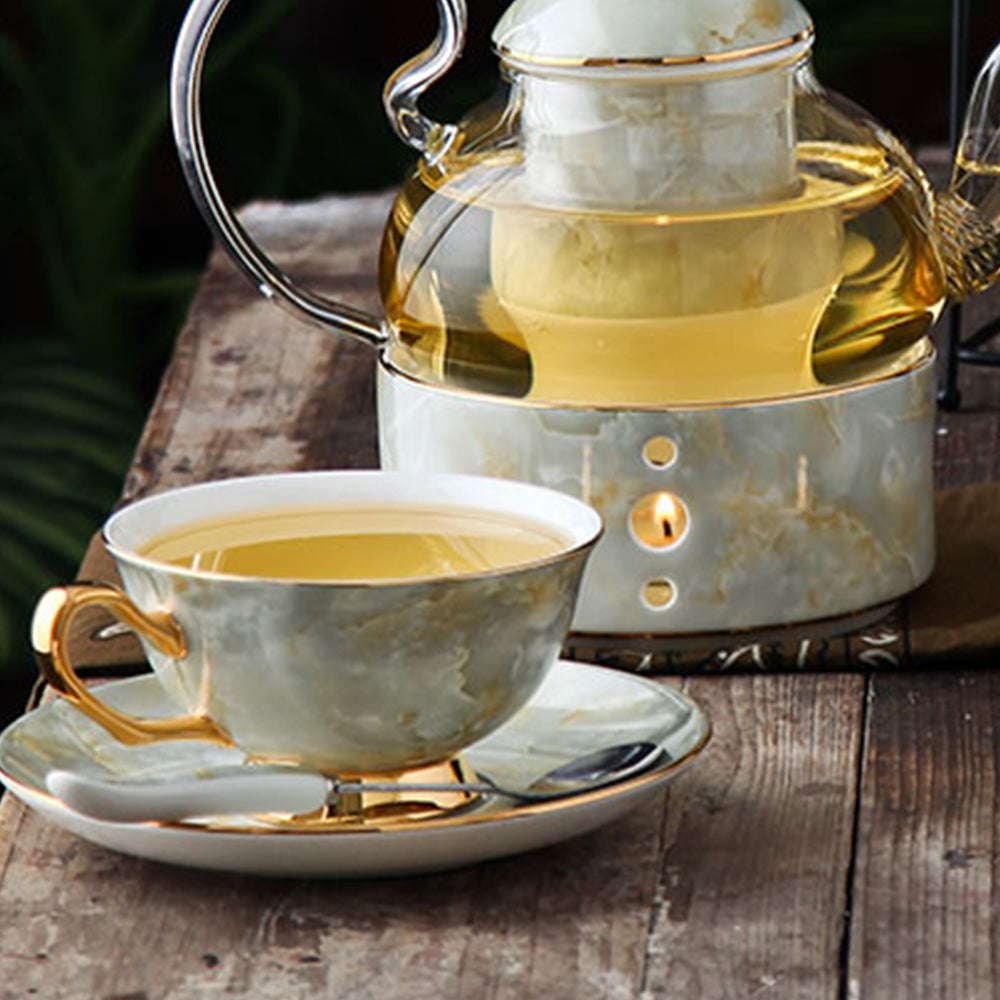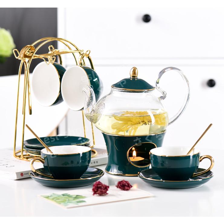 英国式アフタヌーンティー キャンドルティーポット ティーセット 北欧スタイル コーヒーカップ セラミックカップ ソーサー ティーセット 茶器 紅茶ヨーロッパティーセットアフタヌーンティーセラミックポットとカップセットキャンドル加熱ガラスティーポットコー Those。