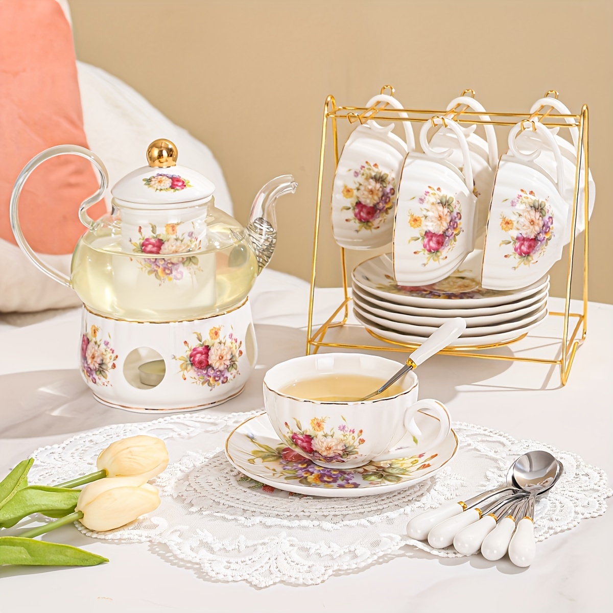 Amazon.co.jp: ティーセット コーヒーカップセット 紅茶ポット セット 15 個北欧高級ティーセットガラスティーポット とセラミック蓋熱保存キャンドルホルダーティーポットセットカップソーサーケトル ティーカップ セット ティーポットセット : ホーム&キッチン。