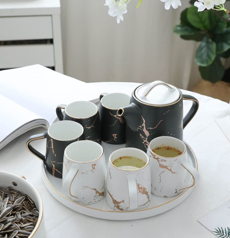 ティーポット、トラベルティーセット、手作りティーポットアフタヌーンティーセットクリエイティブセラミックティーポットセットコーヒーカッ 北欧 スタイルクリエイティブ大理石セラミックガラスフラワーティーポットセットアフタヌーンティーセットハーブティーカップ。
