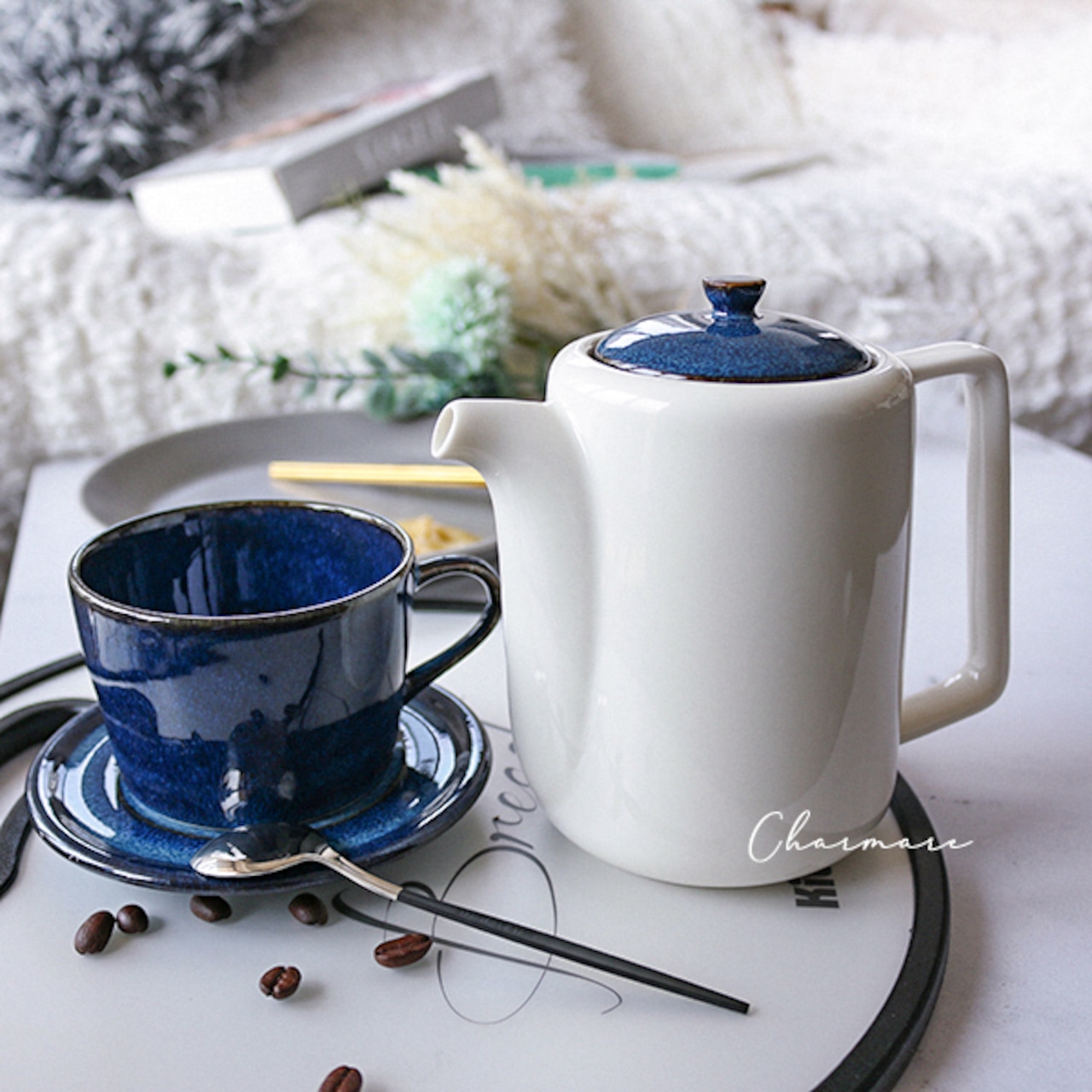 北欧ブルー選べる3タイプ ティーカップ&ソーサー ティーポット 単品SET コーヒーカップ 食器 テーブルコーディネート ティータイムランチ アフタヌーン ハンドメイドティー ペアセット ギフトセットCharmare シャルマーレHome家具・インテリア。