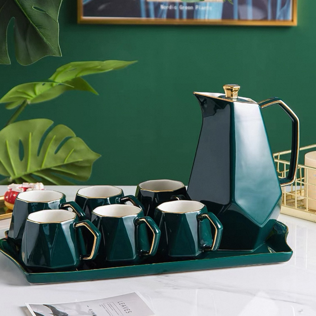 ティーセット コーヒーカップセット ティーカップセット 6ピース ティーカップセット 北欧ティーセット 高級ティーポット コーヒーカ ティーポットティーカップ ティーセット カップ ソーサー 食器 コーヒー お茶用品 高級感 おしゃれ ゴールド グリーンゴージャス 清潔。