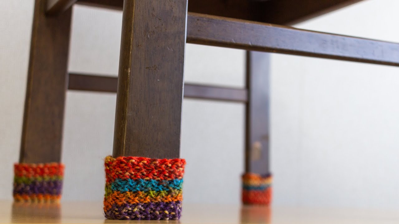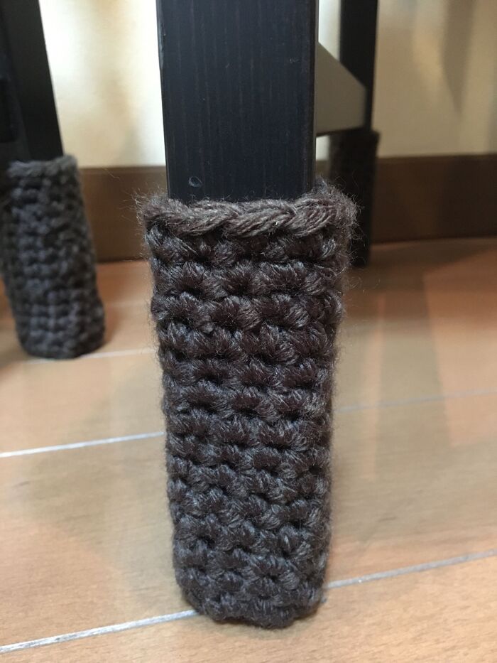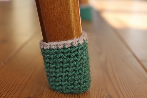 床に傷をつけない!椅子やテーブルの脚にカバーを編みました。KNIT LABO BLOG。