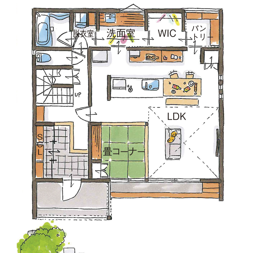 RECO BLOG » インテリアコーディネーターによる間取図解説~家族のくつろぎ&趣味スペースを確保した家~。
