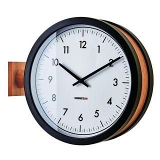 壁掛け両面時計 マッカーティ インターフォルム 黒 木目調。