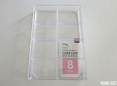 100均「クリアケース 仕切り2トレー」の商品情報とサイズ・収納例。セリアで販売 4947879002376。