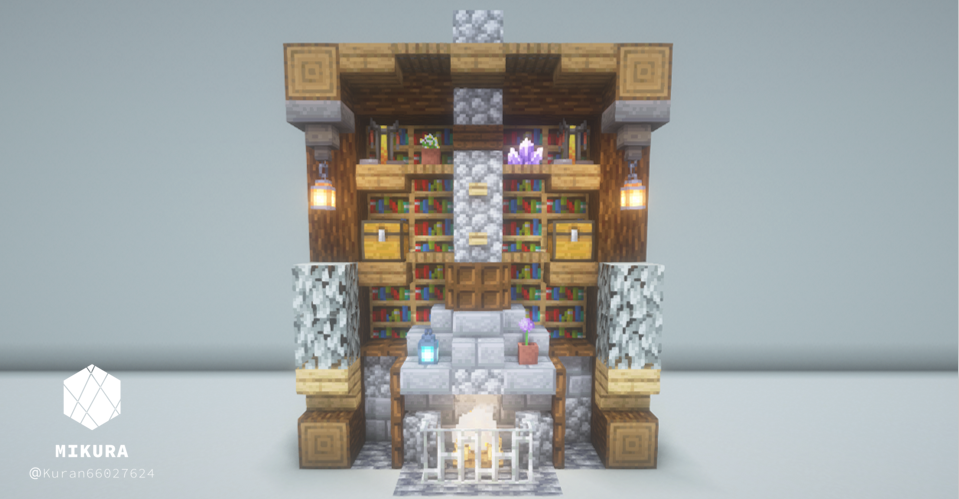 milk猫=^_^=🍀 on X: " MiniaTuria10x10内装クラフトMinecraftMinecraft緑化推進委員会 暖炉のあるリビングです😊https:t.co 3jz9MJZBXk"X。