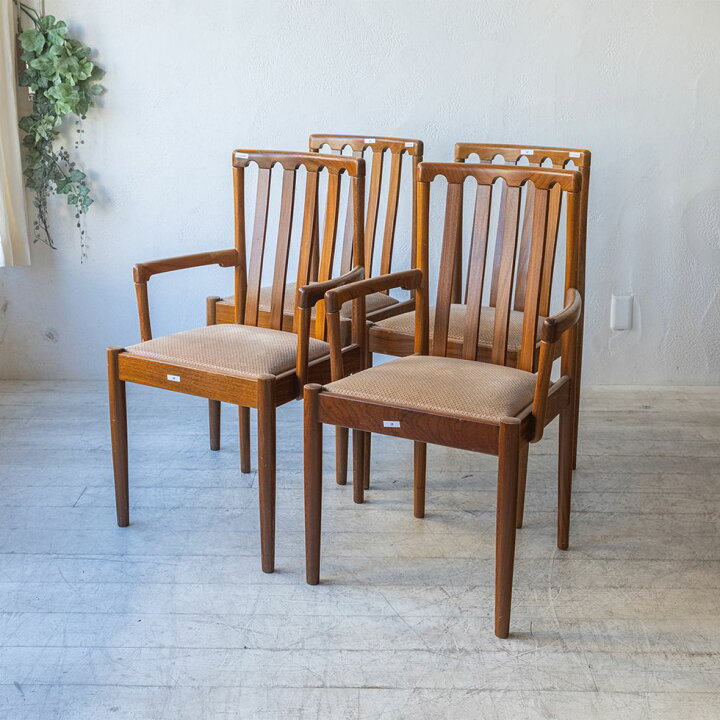 北欧ヴィンテージ チーク材 メンズライクなお部屋にも合うスタイリッシュなデザインのチェア4脚セット ダイニングチェア、椅子、ビンテージR-047700ラフジュ工房。