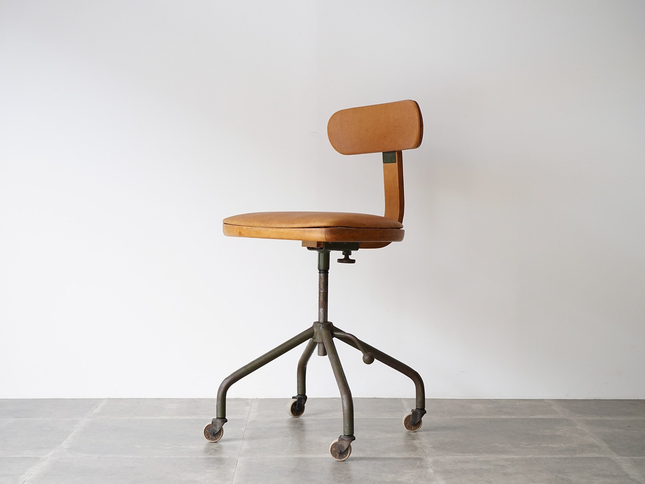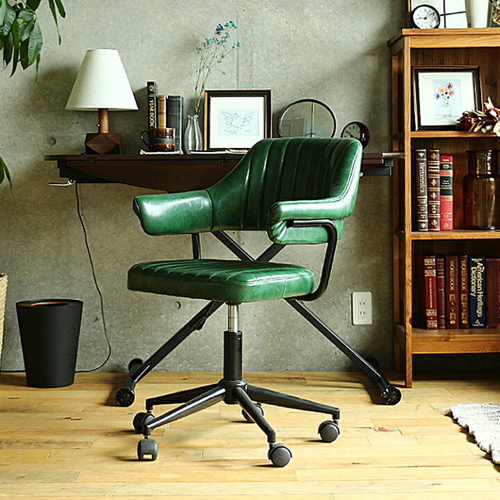 デスクチェアGooze グーゼチェアー チェア 椅子 書斎 オフィスチェア ヴィンテージ ビンテージ ワークチェア イス ミッドセンチュリ―レトロ 大人 かっこいい おしゃれ レザー グリーンキラリオ インテリア 家具 通販。