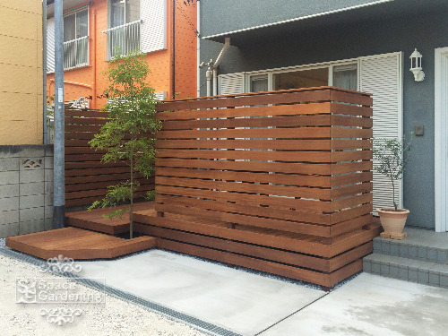 天然木 ウッドデッキに目隠しフェンス福岡市エクステリア・ガーデニング千年翠。