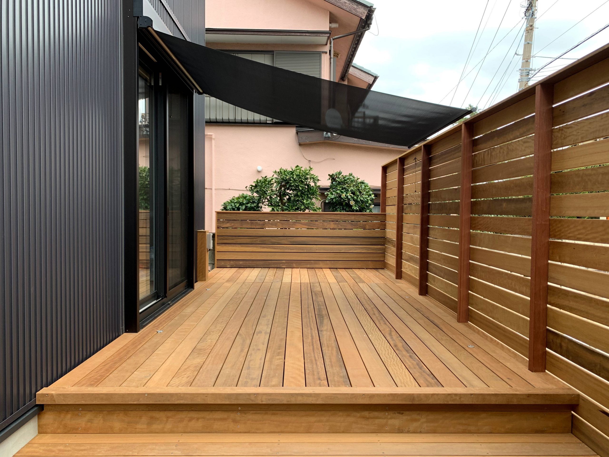 ハードウッド「ウリン」を使ったウッドデッキ&目隠しフェンス 赤磐市M様岡山で建材・エクステリアの事なら三井商会へ。