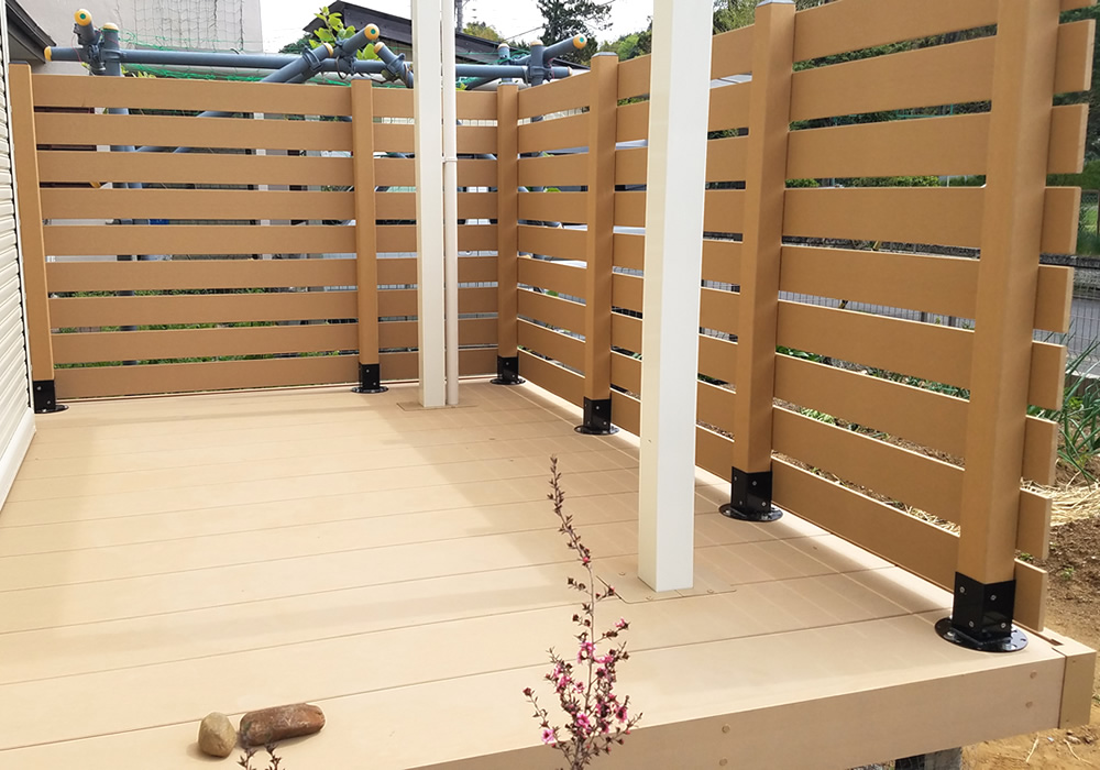No407既存ウッドデッキ上への後付けフェンス ベージュ色目隠しフェンス・ウッドデッキ専門店のエコウッド。