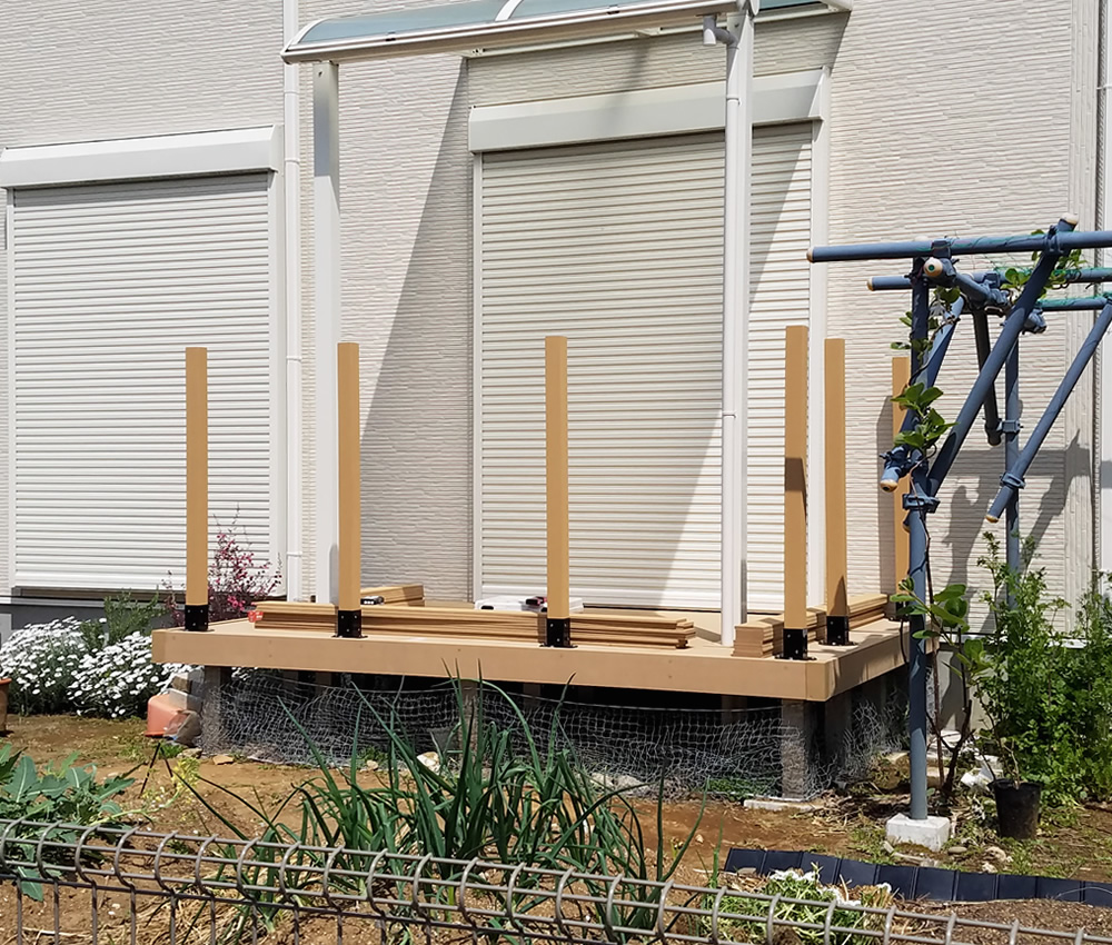 既存ウッドデッキに後付けでデッキフェンスを取り付けました 浜松市東区H様邸浜松・磐田・袋井のエクステリアならハマニグリーンパーク。