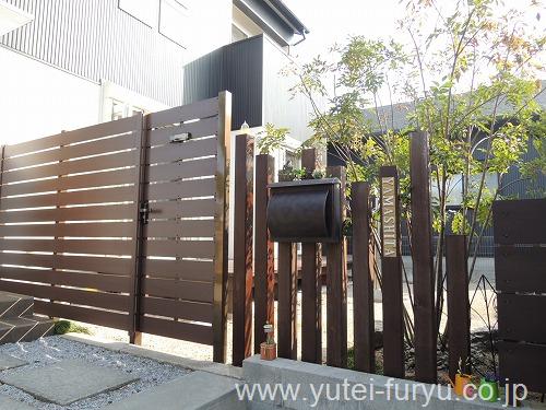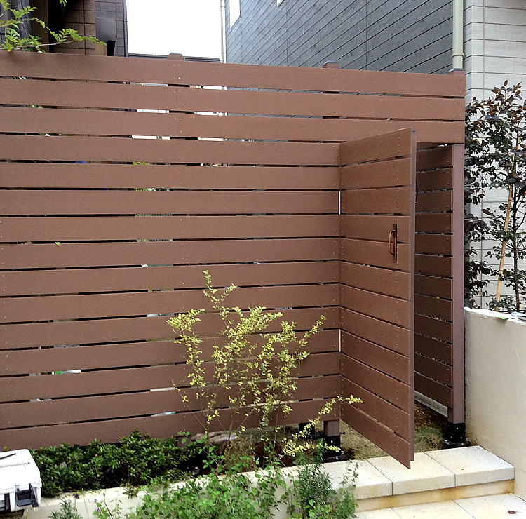 No.118お庭への人工木横張りフェンスと門扉製作目隠しフェンス・ウッドデッキ専門店のエコウッド。