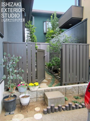 千葉県千葉市 新築庭工事 ナチュラル 目隠しフェンス 門扉。