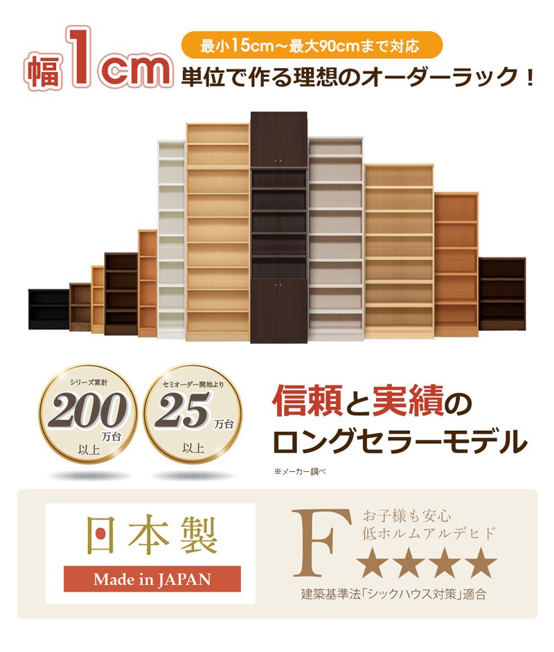 オーダー本棚 幅71-80cm 日本製 F本棚 ラック 壁面収納。