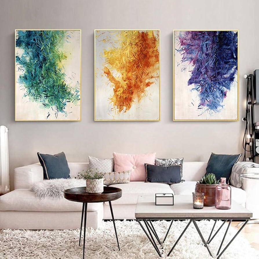 AmazonJSWHPカラフルなデジタルアートポスタープリント抽象的な壁アート装飾絵画インテリア壁掛けスカンジナビアキャンバス絵画モダンリビングルーム家の装飾40×60cm×3フレームなしウォールステッカーオンライン通販。