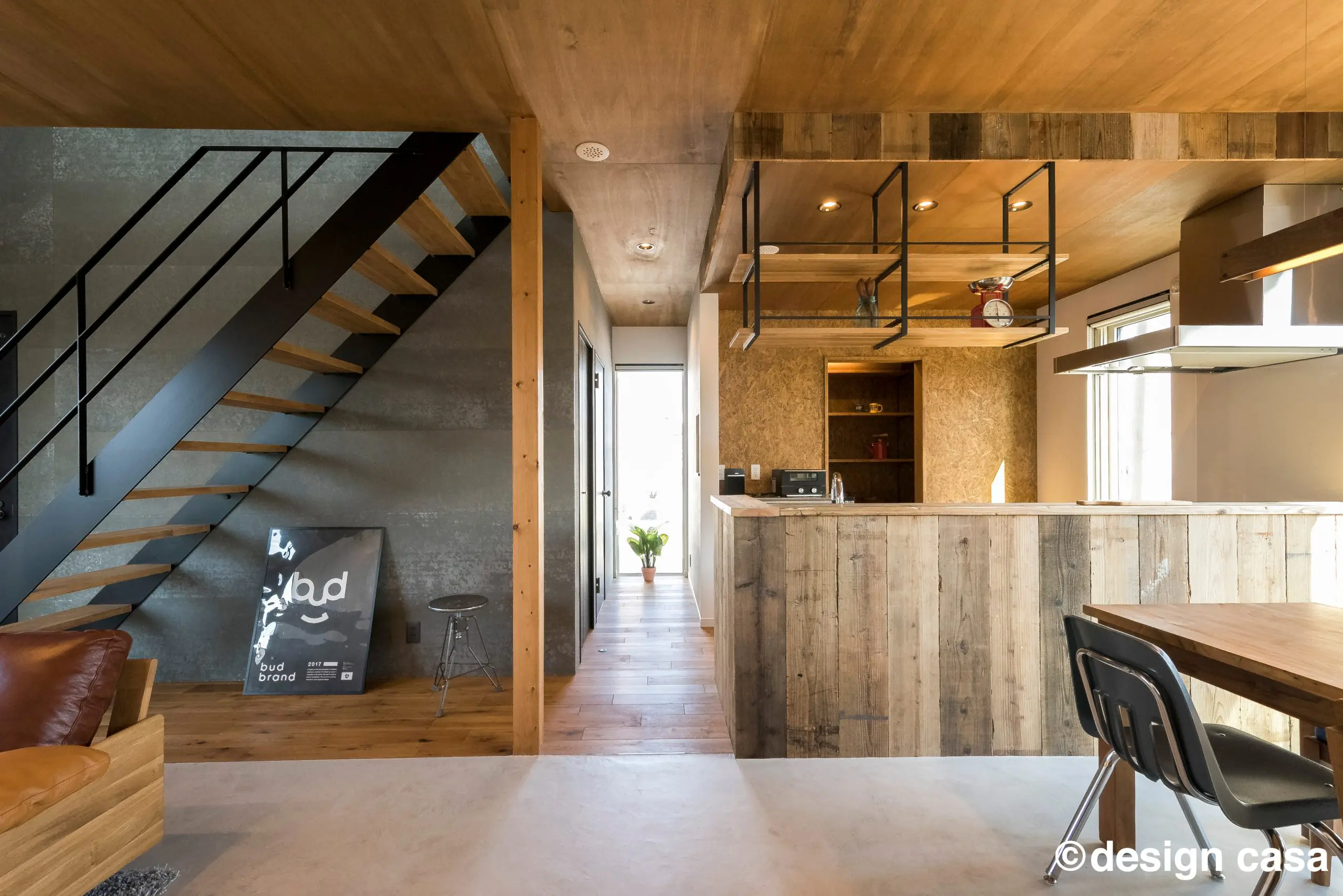 アイアン階段の下に書斎のある家。