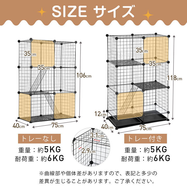 楽天市場10 11まで~先着500円OFFクーポン!! 猫ケージ キャットケージ 3段 超軽量 DIYトレー付き トレーなし 多頭飼い 脱走防止留守番 レイアウト自由 猫ゲージ キャットゲージ 梯子付き ドア付き 拡張可能 DIY式 組立式 幅75cm 高さ106 118cm 猫ケージ 猫ゲージ。