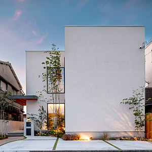 おしゃれな白い家の外観事例をご紹介モダンに仕上げる形状・配色・玄関ドアの組み合わせを解説注文住宅ブルーハウスデザイン・性能・リゾートライフ、愛知、名古屋、豊橋、豊川、岐阜ならお任せください。
