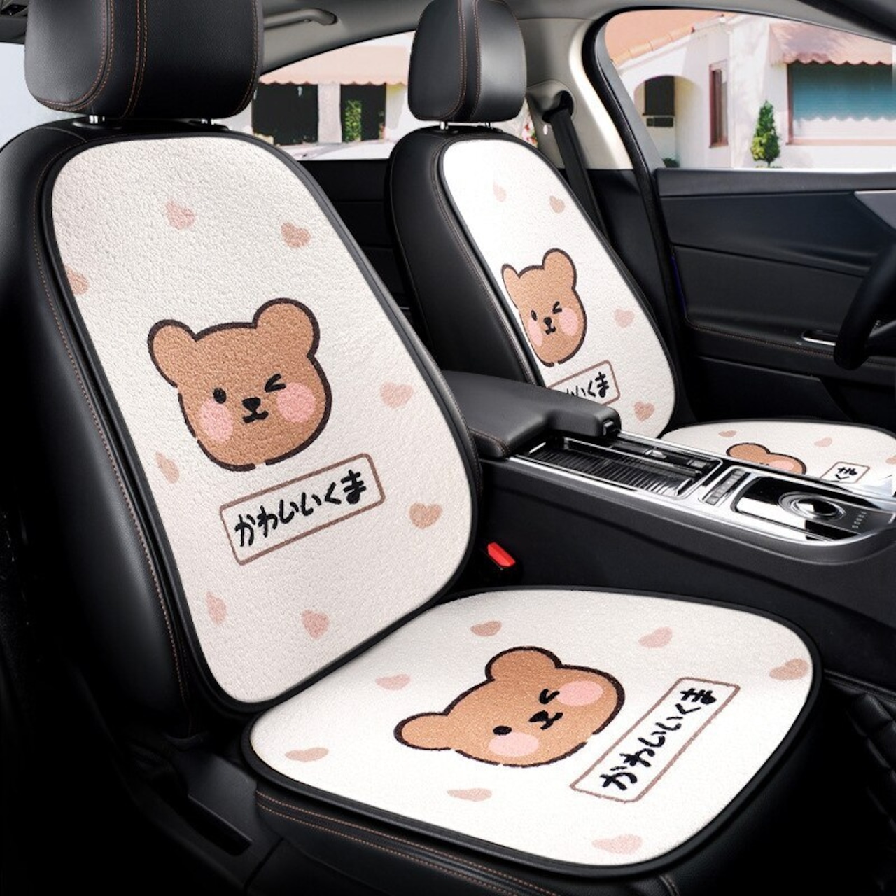 カーシートカバーセット ハンドルカバー ユニバーサル シートクッション クマ 車 インテリア かわいい インテリア 小物 女性アウトドアキャンプ用品・テントやタープ・シュラフ、マットなどワクワクが止まらない 未来志向ショップ。