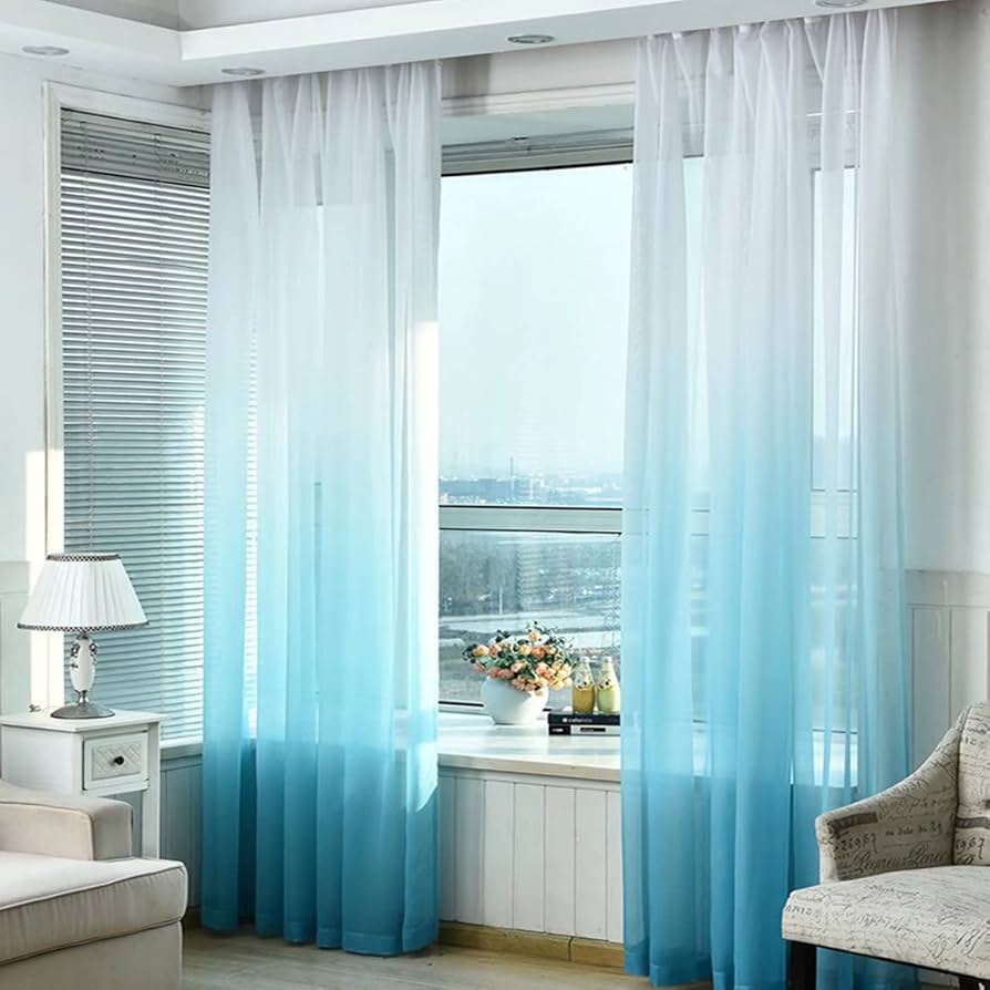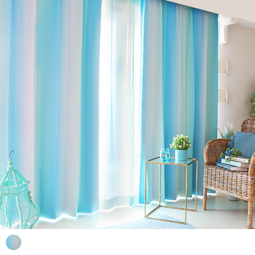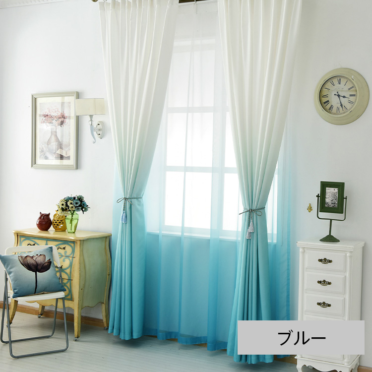 ツートン グラデーションカーテン レースカーテン カーテン 鮮やかなブルースカイブルーマリン。