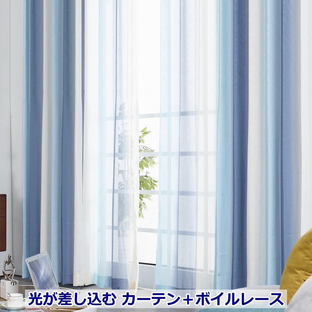 Amazonカーテン グラデーション ブルー 西海岸 レース付き2枚セット かわいい おしゃれ 子供部屋 幅100cm丈200cmカーテンオンライン通販 カーテン おしゃれ 北欧 可愛い グラデーション レースカーテン 西海岸 クリスマス 幅101?200cm丈101?200cm。